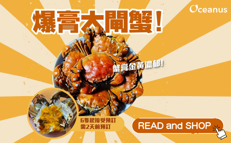 終於到咗食大閘蟹嘅最佳時節,Oceanus嚴選咗幾款爆膏大閘蟹比大家,全部都係A級靚蟹,保證膏香肉多,蟹膏金黃濃郁,豐脥油香!限時限量,快啲同屋企人同朋友開大閘蟹宴啦!