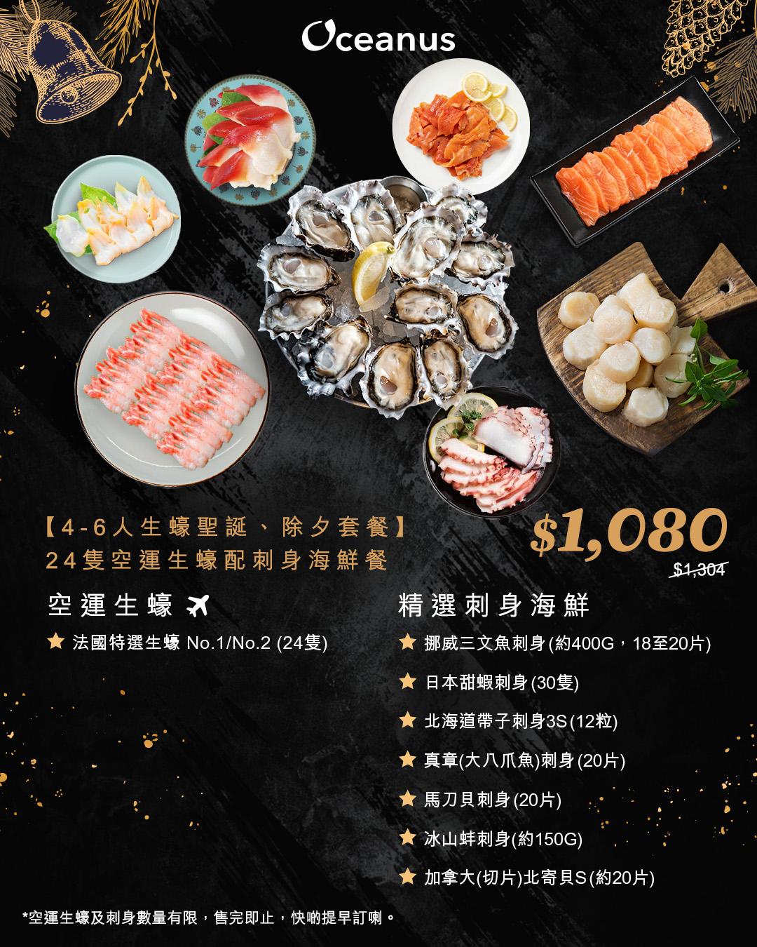 【4-6人聖誕套餐】12隻空運生蠔配刺身海鮮餐($1,080)