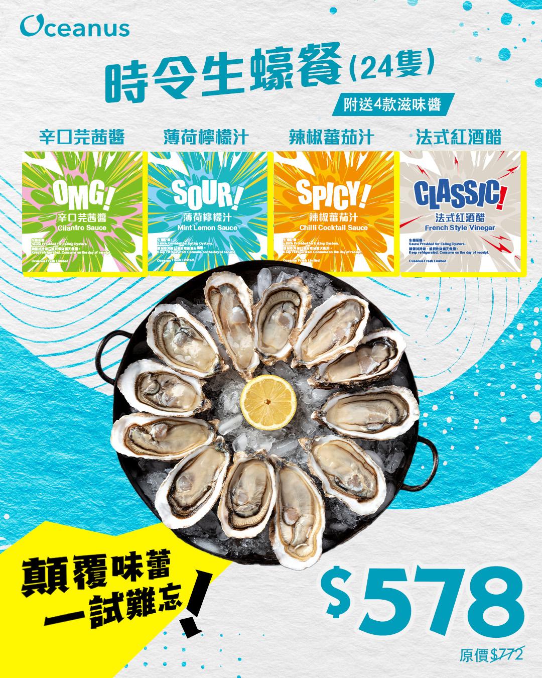 試吓Oceanus嘅24隻時令生蠔餐喇,跟餐配4款精心製作嘅醬汁,一齊Dap吓新滋味!