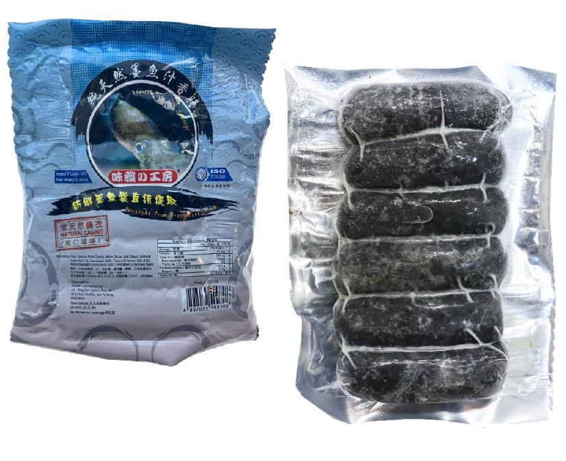 產品規格 : 墨約300g, 6條裝 產品介紹 : 墨魚汁香腸的墨汁從純正天然的墨魚囊直接提取,非墨魚粉製成, 天然健康, 墨魚汁含有優質的蛋白質、鉀和氨基酸,營養豐富; 採用全天然腸衣, 香滑脆口, 精選豬肉及香料,鮮嫩多汁。經台灣香腸食品專家監製!符合ISO 2200證書認證,HACCP認証,製作嚴謹,品質有保障!適合任何煮方法, 簡單方便!