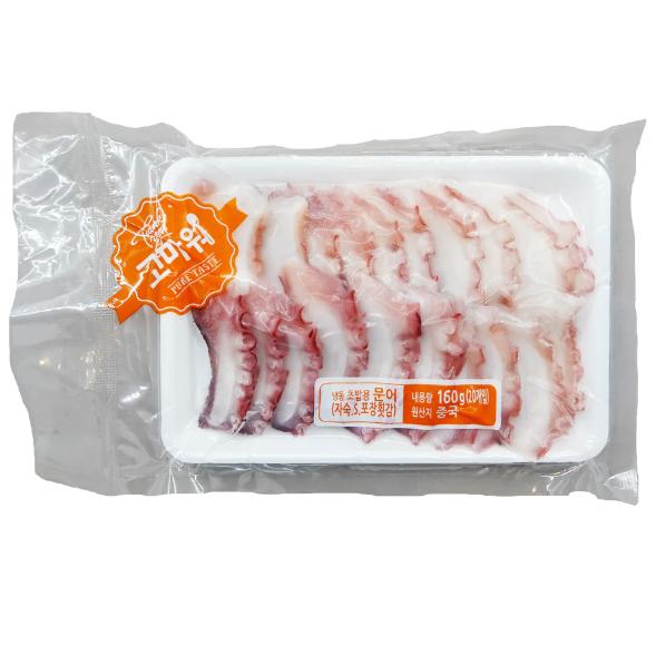 八爪魚又稱章魚, 在捕獲後, 上岸進行加熱烹熟, 隨即採用低溫急凍技術, 解凍後即食可用作壽司材料或刺身食品, 方便衛生! 真章(大八爪魚)雖然味道較為清淡,但口感卻出奇地有咬勁,咬起來彈牙,口感嫩中帶脆,新鮮爽嫩,非常有嚼勁,肉汁在不知不覺沖充斥在你的口中! 保存方式 : 存放於-18°C雪櫃